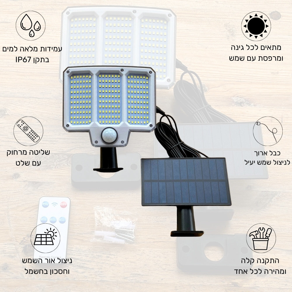 פרוזקטור חיישן תנועה סולארי חכם תאורת LED עוצמתי לגינה | אודמלו ישראל